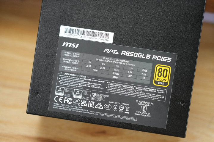 微星MAG A850GLS PCIE5电源的+5V和+3.3V的直流输出为20A,联合功率为100W;而+12V的直流输出为70.8 A,功率为849.6W。