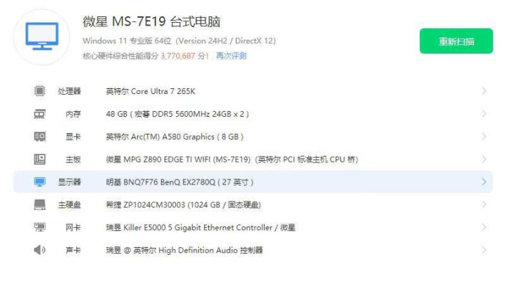 主板:微星 MPG Z890 EDGE TI WIFI (MS-7E19)