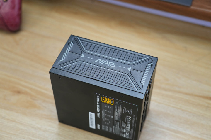 电源整体在外观设计上,以黑色作为主色调。在其侧面区域,运用了丝印工艺制作出纹理装饰,为电源增添了一些细节与质感。而在电源的正中间位置,清晰地印着醒目的 MAG logo,十分引人注目。